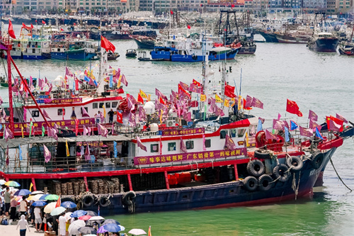 随着海陵岛码头开渔号令响起,12艘“头船”带领着3400艘渔船列阵出港,奔赴作业海域。一年一度的开渔季活动就此开启,不仅标志着今年南海伏季休渔期的结束,也展示着广东地区“向海而兴、耕海牧渔”的海洋文化。