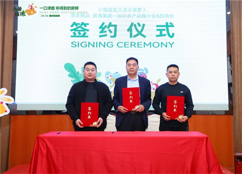 推介会现场, 天津大美良田农业科技有限公司与三家华南渠道企业签订150万斤水果萝卜采购意向合同,其中包括对香港地区的50万斤供应计划。