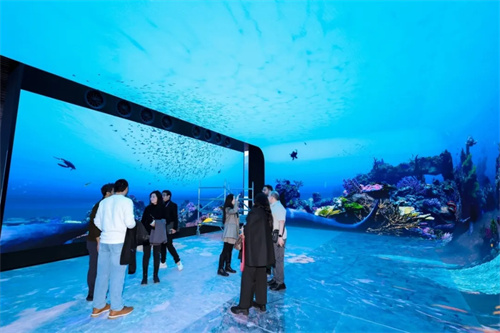嘉宾们先后观赏了1F飞跃厅的16K全景沉浸影像,以及2F灵动空间17K实拍360°影片《生生长流》与全息剧场《幻境·天鹅湖》,近距离感受科技对感官体验的重塑。